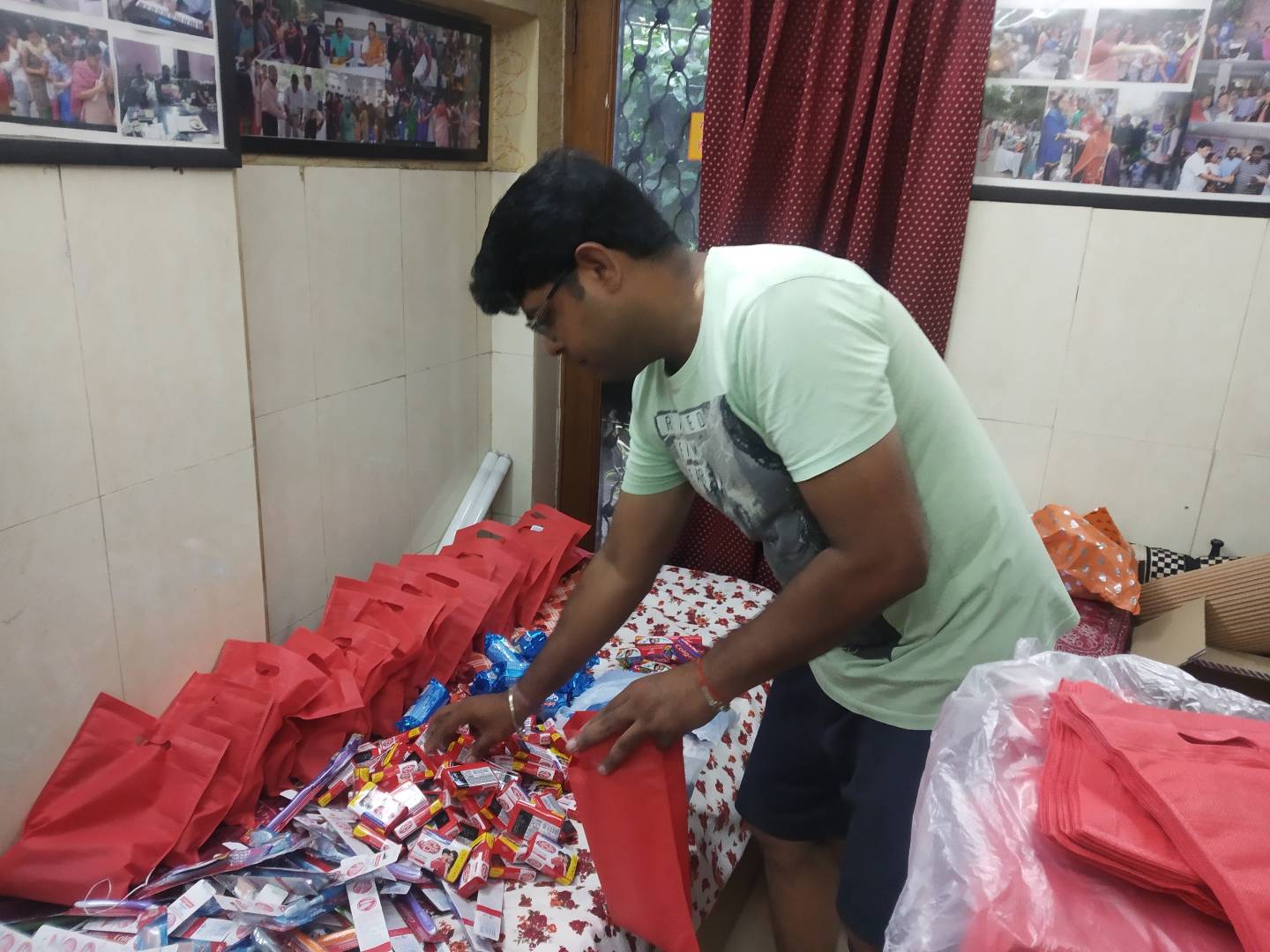Paste, Brush, Soap, Biscuits, and fruits items for distributions at Hospital's.