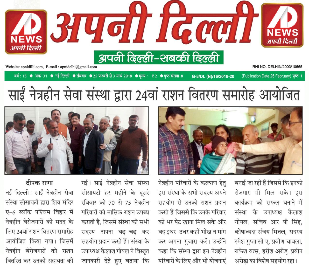 Sai Netrheen Sewa Sanstha was established with a mission to work for the welfare of Visually Impaired families. The Sanstha started their Noble Cause with monthly Ration distribution to 26 Visually Impaired families in March 2016.